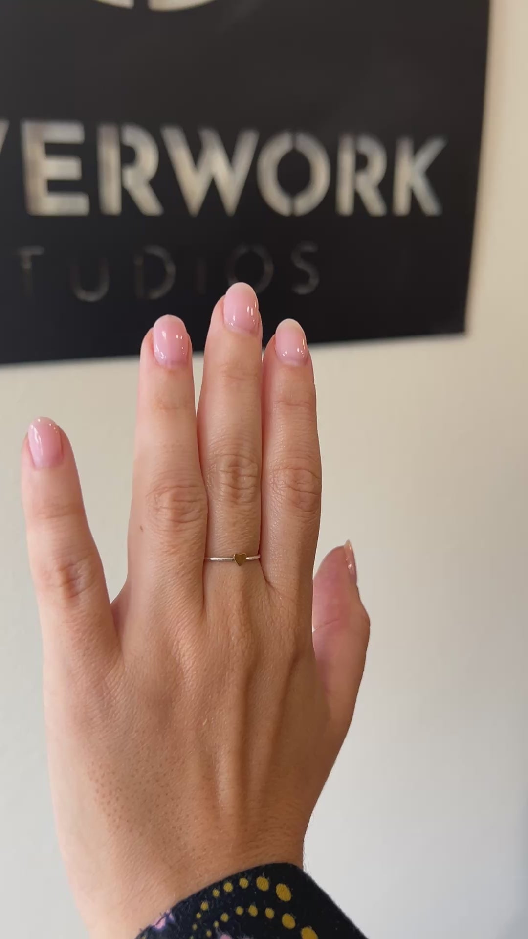 Delicate .925 silver band with gold plated heart ring