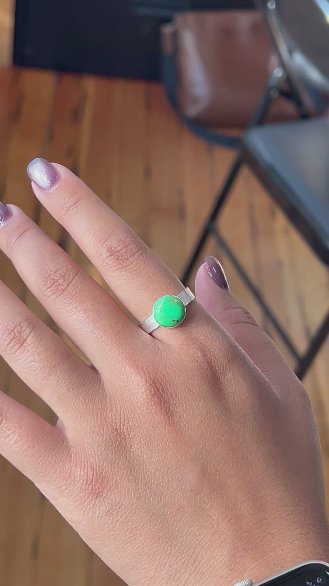 Green turquoise with hammered silver band