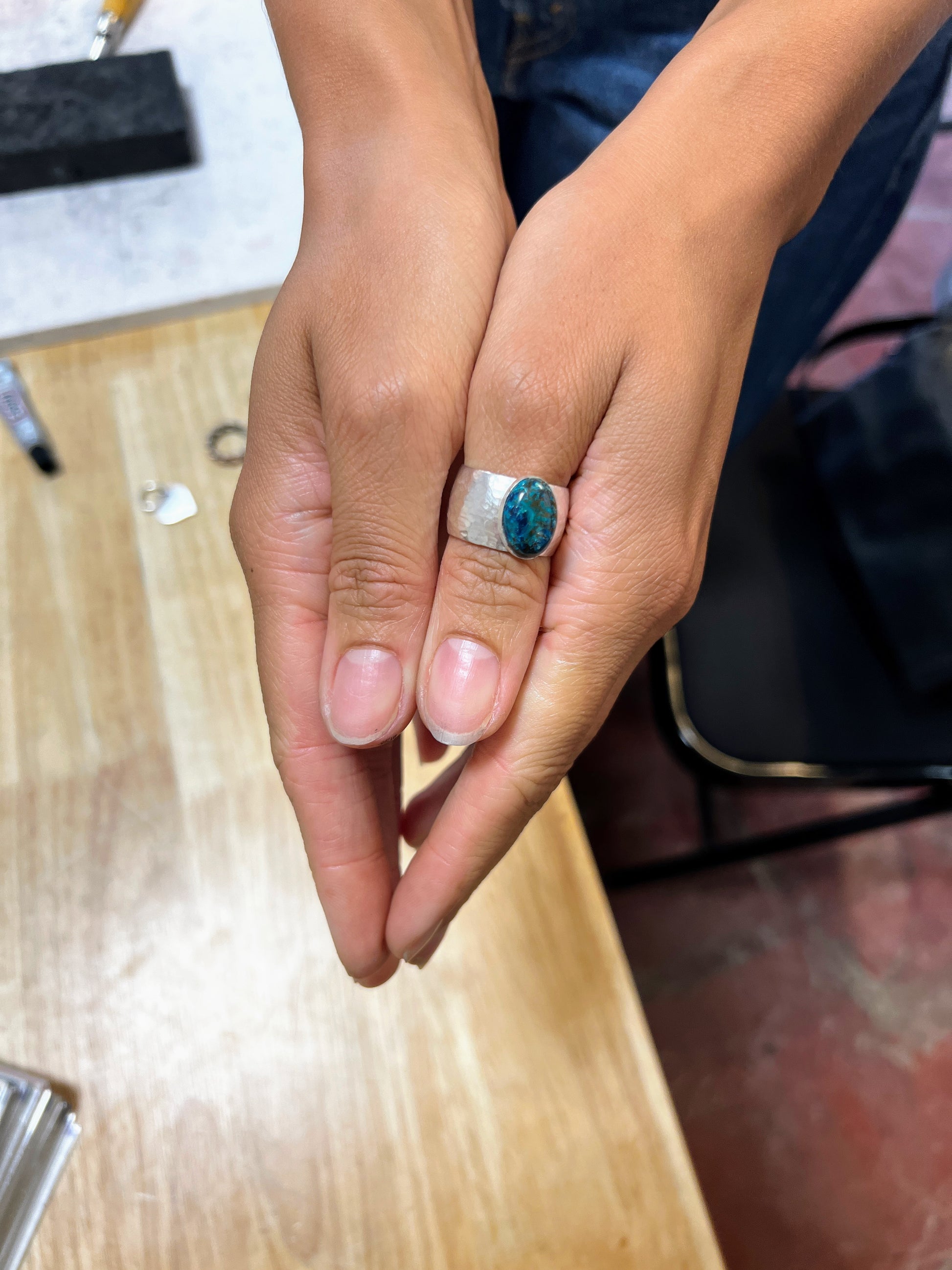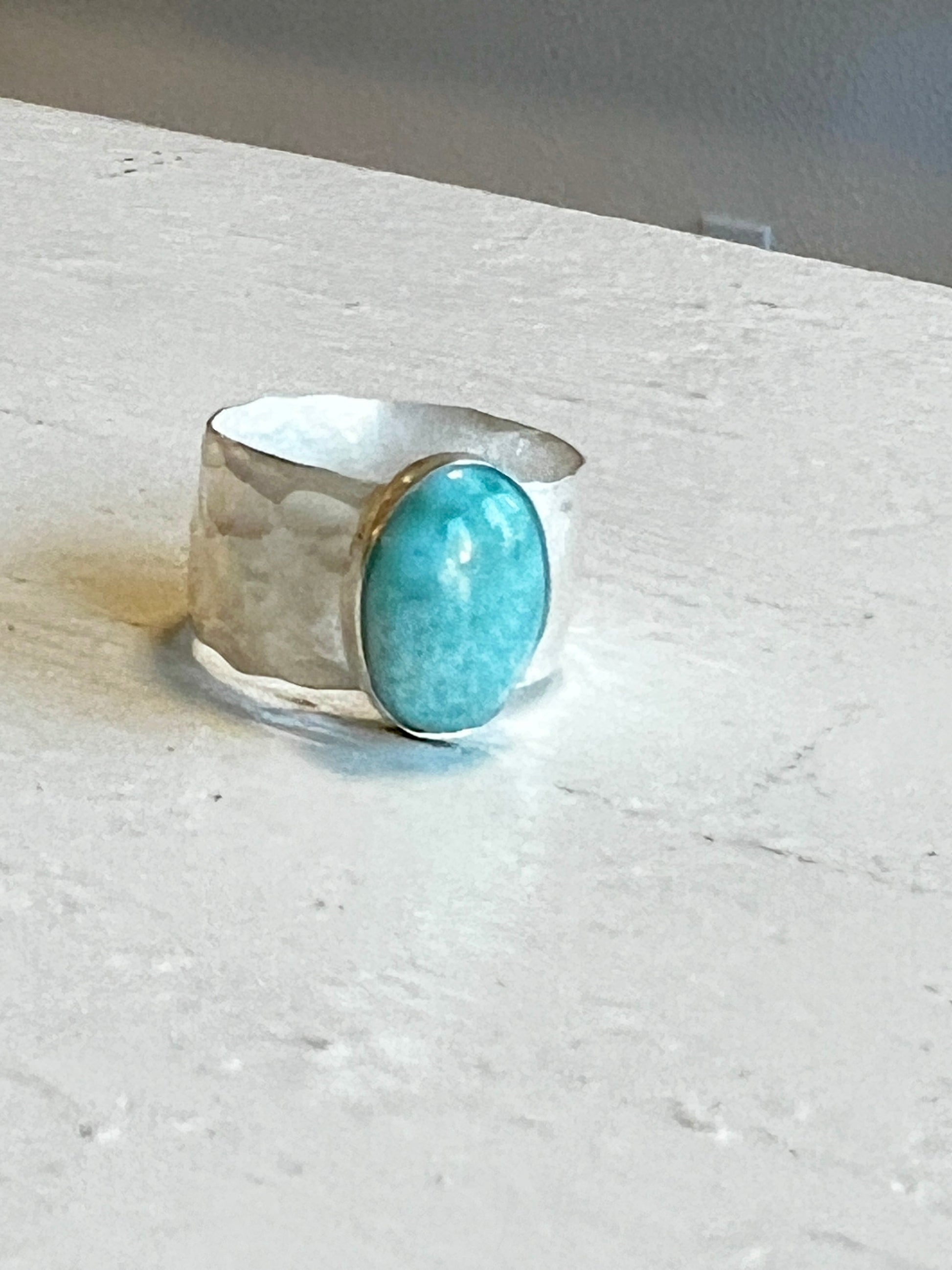 This super thick .925 sterling silver band features a bold oval gemstone—choose from blue green turquoise, black onyx, rose quartz, sky blue larimar, or mystical labradorite. Personalize the inside with your choice of stamp: your initial, astrological symbol, heart, wave, or infinity sign, making it uniquely yours. Durable and striking, this ring combines lasting quality with meaningful customization.